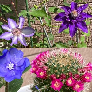 良いお天気☀️ 多肉女子に憧れて少し多肉を3年目に*゚✲ฺ︎ 咲かないと言っていた私のサボテン🌵 おひさまが迎えに来た.:*゚・;*:☀️✨ 今朝から咲いて〜〜来たよ**✿︎❀︎ となりのアメリカンブルーも満開❀︎。*゚✲︎* クレマチスがまたポキに少なくても綺麗🪻 穏やかな一日をお過ごしください。゚✶ฺ︎.♡ 🏷️モダンな木曜日 🏷️愛しの紫 🏷️癒しの薄紫 参加させてください〜♪