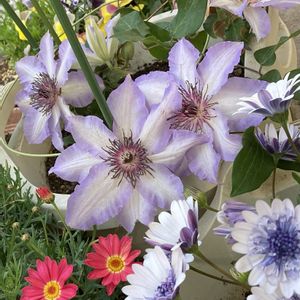 穏やかな土曜日☀️ 雨が降り植物たち🪴とても嬉しそう〜♪ 会津の桜を見に行って園芸店へも寄り道♪ あっクレマチスが‼︎まだビギナーだから無理〜 諦めていたが出逢ったら欲しい♡ コーヒー代くらいだわ☕️💠 これならちょっと練習用に…言い訳しながら 3鉢手にする私を一緒に行った友人が笑う 左上はスイセイ🏷という品種 パンビオはどれも満開💠 私のドラマチックな土曜日**✿︎❀︎✿︎* 穏やかな一日をお過ごしください。*゚✲︎*☆︎ 🏷美しく青きドヨウ 🏷春色の青い花2023 🏷愛しの紫 🏷癒しの薄紫 参加させてください〜♪