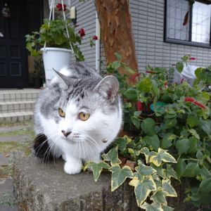 おはようございます🎵 雨の上がった朝です✨✨ 玄関の見張りは欠かせません❣️ ちび太😾