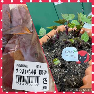 直売所にうってた普通に食べる用のサツマイモ。 こうして土に埋めとくと、発芽して… 伸びた蔓を切り取使えば サツマイモ苗を無限に増やせるとか…増やせないとか… そんな話聞いたらやらずにはいられません😂食べたいという気持ちをぐっと堪えて、行ってらっしゃーい🤤🤤🤤