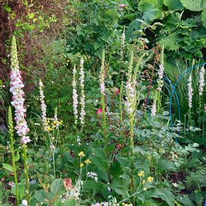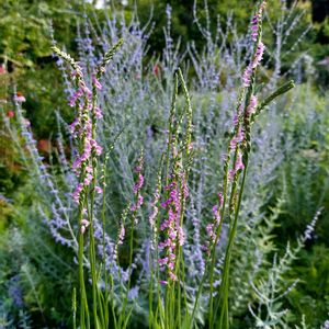 ネジバナとロシアンセージ ネジバナは咲く場所を選びそうなので まだ、頂いた時のまま鉢植えです どこに植えてみようかな バランスとるために ネジバナは下駄(三脚)履いてます