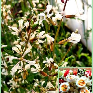 ルッコラの花を投稿したら、何人かの方に「お花も食べられますよ」と教えていただき、サラダに散らして食べましたよ🥗 ͛.* 葉っぱより甘みがあって美味しかったです(*´ч`*) 教えてくれてありがとう🍀*゜😊