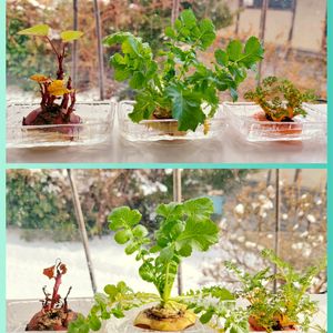 🌱上が1月5日 🌱下が2月2日 ニンジン以外はたいして成長見られず⤵︎ ︎そして、大根とサツマイモは残念な感じ🌿味噌汁にチャチャッと散らして食べますかΨ( 'ч' ☆)