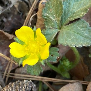 こんにちは😃 山野草の時間です⏰ ヤブヘビイチゴ🌼 黄色のこの花は難しい💦 多分、この葉っぱはヤブヘビイチゴかな? 違うかな?💦💦💦 昨日の山で元気良く咲き始めた所でした🎵 黄色のお花です💛 実はやっぱり美味しくないようです🍓 今日もお疲れ様でした🍵 もう少し頑張りまーす‼︎
