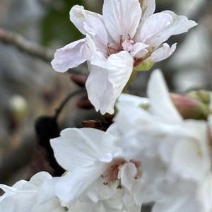 おはようございます😃 今日のお花、フユザクラ、過去picです。 ご近所で2か月くらいずっとポツポツ咲いてます🤔 ②こちらは公園で雪が降っているようでした。