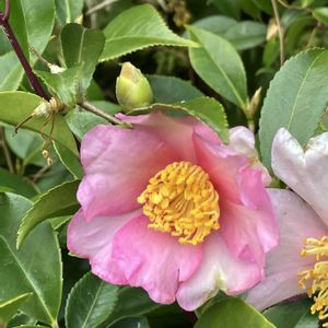 "日曜日は日本を感じる和の花" 近隣散策の山際。 いろんな種類のサザンカが可愛らしく咲いていました。 📷️ 2025.12.初