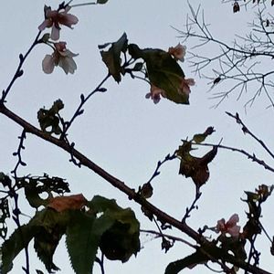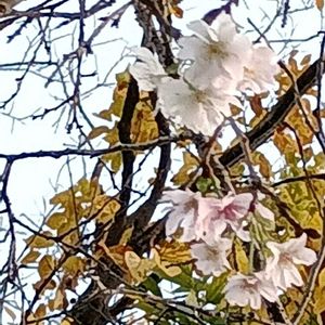 今日のお花 フユザクラ 昨年に続き、今年も皇居乾通りの一般公開に行ってきました。(11月30日) 朝から,帰る夕方まで雲一つ見なかった最高の紅葉狩り ❶❷ 坂下門から少し入った場所のフユザクラ ことしは名札を見落としたが昨年と同じ場所で 昨年はフユザクラの名札あり 昨年より花数がすくなかったが、一週間早かったからでしょうか マメザクラとヤマザクラとの雑種 別名:コバザクラ ❸❹ 先へ足を進めるとシキザクラが(名札あり) こちらは,たくさんの花をつけ,多くの方が撮影を シキザクラも広義の冬桜の一つとされている マメザクラとエドヒガンの雑種 昨年に比べ、イロハモミジは紅葉が進み終盤を迎えている木もありましたが😞 トウカエデは美しい紅葉が見られました🍁