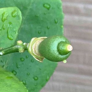 アゲハやモンシロチョウの幼虫の餌食になりつつもレモンに初めて実がつき大きくなってきました🍋 気がつくと実にも又タマゴが‼️ホンマに狙われ過ぎ😭