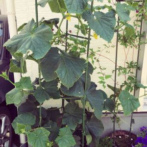 ついに色づいてきましたー。 あとどれくらいかなー。 風が強い日に鉢ごと倒れて、折れた実もあるので、今ある子を大事にしなくては! ちなみにきゅうりは昨日二本、今日三本収穫。 取るたびに丸ごと食べていた2歳も飽きた模様。。。