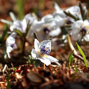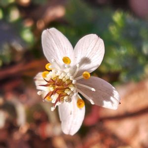 セツブンソウ (キンポウゲ科) 関東地方以西主に太平洋側に多く咲くようです。節分の頃に咲くことからこの名前が📛花弁に見える5枚の白いのは萼片。近年は土地開発や盗掘のせいで激減とか😨盗むなんて情けない💢