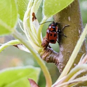 庭の斜面の洋梨の木に天道虫が…🐞