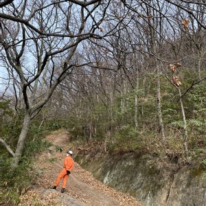 コナラ❓クヌギ❓など 落葉高木 こんにちは💕 昨日の高屋神社天空の鳥居に行く途中🍂 全て落葉しています🍂 写真ではなだらかに見えますが勾配がキツイんです😅 この日は遭難訓練をしてまして、このキツイ坂を上がり登っていくと危険ですので、下で待機していてくださいとここまで下って40分以上待たされました😅💕 ヘリコプター🚁が巻き上げる落ち葉はまるで手裏剣のように鋭くて怖かったですよ😰🍂 落葉は大きくて鋸歯の先は鋭い棘がいっぱいの葉でしたよ🍂 でもお陰で先に上がった琴引八幡宮⛩の階段の疲れがすっかり取れてました😘💓