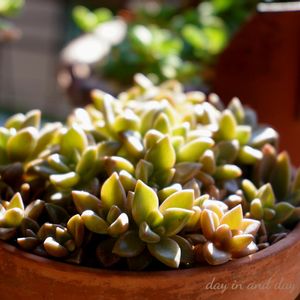 昨日の雨は時折り激しくて☔ ベランダの多肉棚にも降り込んでいます💧💧💧 今日は気温が上がる予想 多肉たちが溶けちゃうのでは?の心配が🫠😱 朝日を浴びた多肉たちがキラキラしています 透けてる葉っぱの多肉✨✨✨ ㌧㌧ヽ(・ω`・o) ネェネェ 花友さん 万宝だったよね?