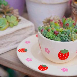 今日は雨が降っています*☂︎*̣̩⋆ 少し暖かい朝です お義母さんのお店に置く寄せ植えを作りたいと娘👩 寄せ植えに使える大きさの多肉が無くて、必然的に”ちま寄せ” 苺の柄のコーヒーカップ 女の子のお母さんだったら、見覚えのある方もいらっしゃるかな😁 娘が小さな頃遊んだ、ママイクコのおままごとセットです ほぼほぼセダムの”ちま寄せ” 霧吹きもセットでプレゼントするそうです🎁