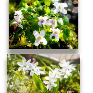 実家の庭に咲いている ちっちゃなお花 ある一角で1面に広がっています ✿.•¨•.¸¸.•¨•.¸¸❀✿❀.•¨•.¸¸.•¨•.✿ イオノプシジウムかな🤗 白地に水色のラインが綺麗 とても清楚なお花 これはシラーかな🤔 少しづつ連れて帰ってきました( •ᴗ•)*♪