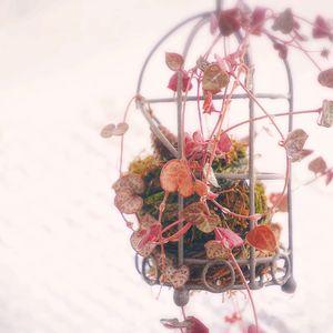 ハートカズラෆ ̖́- 寒さに弱そうだと思いながらも ベランダのプチプチの簡易温室で過ごしてもらっています 葉っぱもポロポロ落ちましたが 何とか耐えてくれました👏👏👏 赤くなってとても綺麗(*˘︶˘*).。.:*♡ 暖かくなったと思うとまた寒くなる🤷♀️ プチプチ外すタイミングに迷います😓