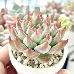 多肉植物園ナイト営業ラスト✩.*˚ 『チワワエンシス シュガーハート』 ドルチェ苗で品名は確認出来ているので、この名前で間違いはないでしょう。 まだ微根です。(1cmくらい) とりあえず心配もしていません。 ロゼットも安定しているし♪