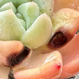 葉の中間が黒く腐って来て… 早めに葉をもいだので無事だった『チワワエンシス×アメチスチヌム』 マチルダ(アメチスチヌム×チワワエンシス)の逆交配です。 片側半分無くなってブサイクになったついでにチョンパして茎の様子を見たらキレイ♪無事で良かった♪