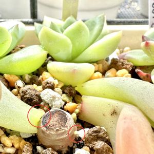 茎の途中から黒ずみチョンパした『チワワエンシス×アメチスチヌム』 緊急手術で早めにカットしたので頭は無事♪ 摘芯も黒ずんだ上側をカットして無事♪ 葉挿しから芽が出ています♪ 普通だと、葉挿しより早く摘芯から発芽しますが… この子は1ヶ月以上経っても出る気配がありませんでした^^; 遅れる事、本日やっと(約2ヶ月)摘芯からも発芽しました( ´ ▽ ` )ノ♪ カットすると発芽スイッチが入ると 何故だかは知らないが カットした摘芯はいつも濡れている状態にしていても根腐れしません。 不思議(˙˙*)? 肥料も足し、毎日水やり発芽促進になり発芽しました。 いつも 芽か1cmを越えるようになってくると、通常モードに変わってくるので、水やりの回数を減らして徐々に通常の水やりに変えていきます。