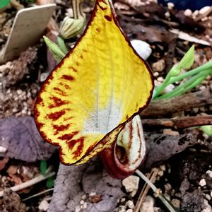アリストロキア シンビフェラ🌿 26cmくらいか 結構大きいのが咲いたっ!🌸 夜は息が白くなるほど寒いのに! 蕾も大量に作ってるのでもうしばらくは楽しめそうかな❓️