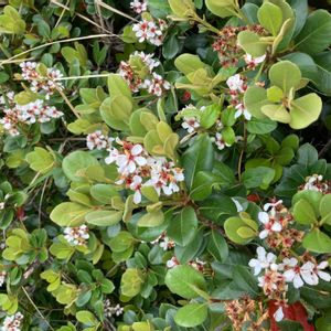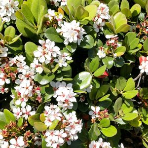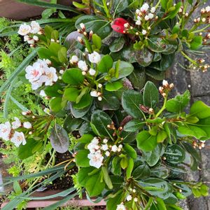 ꕤ オハヨ-ゴザイマス ꕤ 昨夜の雨と風🍃は凄かった(>△<*) 雨は良いけど風は勘弁してぇ〰️ 多肉たちにかけているビニールがバサバサ💦 朝、確認したら切れてました💧 ❁⃘マルバシャリンバイ 通り道のお花さんです だんだんと咲き始めました😊 .𖥔 ݁ ˖. 𑁍ࠬ ܓ