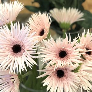 ガーベラ ファンシースパーダ入荷しております。 茶色の芯がおしゃれ♡ 花持ちも良く、花びらの反り返りなども無く、コスパ◎です🤗