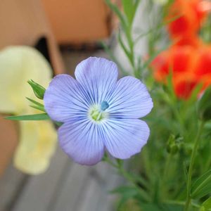 こんにちは😃💛💚💛🍀 種子を蒔き育てた可愛い花が咲きました🥰🥰👍 初投稿できて嬉しいですヾ(๑╹◡╹)ノ"💙💛 外では風がビューンビューン吹くのでなかなか撮れずに玄関の中に入れて撮りましたよ😊 (((o(*゚▽゚*)o)))♡💙🤍💚🤍💙 ◎ リナム ブルードレス👗 リナムについて リナムというのは、アマ属の属名ですが、園芸として栽培されているのは、アルジェリアなど北アフリカ原産のグランディフローラム(L. grandiflorum)です。 花色は、‘ブルードレス’のように青紫が普通ですが、変種に真っ赤な花が咲くベニバナアマがあります。本来なら一緒にすべきですがベニバナアマとしてタネが売られていますので別にしてあります。どちらも、まとめて植えると一層見栄えがします。 アマ属の中では、 ヨーロッパ原産の宿根アマ(L. perenne)も栽培されています。 なお、アマ(l. usititissimum)は、有用植物として広く栽培されています。 5月頃、非常に鮮やかなブルーの花を満開に咲かせます。 多花性で、非常にたくさんの花が咲きます。 大変強健で、暑さは好きではないのですが、暖地でも宿根します。 草丈約80cmの高性品種ですので、花壇やお庭の後方に植え付けてあげて下さい。 毎年大株になってゆきます。 あまり手間はかかりません。 発芽適温 約20度 早めに種子を蒔いたので、急に気温が上がったので1輪咲きました(^O^☆♪💙🤍💙🤍💙🤍💚🍀💚 🏷 (祝)チーム・ブルー2周年 🏷 青い花とその葉を写そう!2022 🏷 美しき青きドヨウ 🏷 チーム・ブルー◆青い花を育てよう!