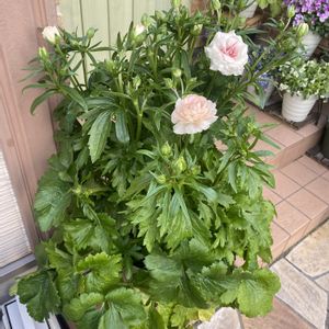 ラナンキュラスラックス 🌱アリアドネ🌱 🌱ミネルバ🌱 アリアドネ2年目にしてデカいです。 ミネルバはベビー苗みたいな鉢からの2年目で細いです。 6号鉢では水切れが早くて困ってます。 鉢増しするか悩みます😅 📷こちらはバイツァダストでパシャリ♪