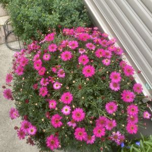 こんにちは♪ 以前、はみ出し咲きしていたボンザマーガレットです🤭 やたらと大きくなりました。 他のボンちゃんより柔らかく、しなやかです🤭 なんでやろ? でも何か楽しみです。 2枚目は6号鉢のフィオリーナと比べてみました。 写真は吉良吉影のポーズでパシャリ♪
