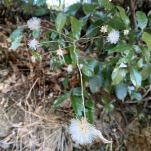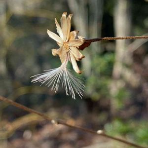 1月31日撮影 奥武蔵 まだまだ続くコウヤボウキの冠毛です。 先ほどの記事にあったように、花や冠毛の時期は、枝はしなだれています。 重さで花や葉や実が落ちると上を向くしなやかさが、箒に合っているのかもしれませんね☺️ これは、筒状花が残っています。 くりんとしてぶら下がっているのがなんか可愛らしかったので、思わずこれも…😆 コウヤボウキ(高野箒) キク科コウヤボウキ属