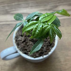 パキラ。 20日ほどで葉っぱも大きくなりました。ツヤツヤで可愛い😍