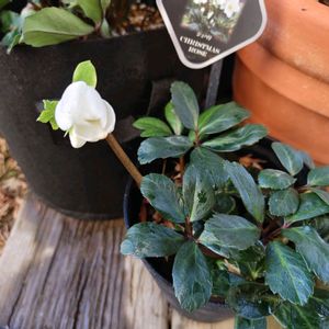 先月お迎えしたクリスマスローズ。植え替えました。葉についた白いのが気になります。やっぱり切り取ろうかな。