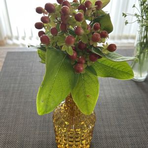 ヒペリカムの実って ホント可愛い💕 アンティークショップで買った アンバー色の花器に♡