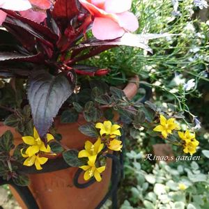 リシマキアミッドナイトサンの 銅葉が好きなんだけど お花が咲いてくるともっと好き💛 黄色いお花が可愛いです✨✨✨
