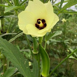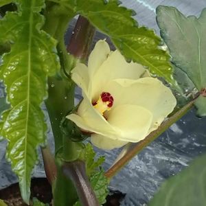 畑 その3 オクラの花💠 キレイだったのですね✨知らなかった