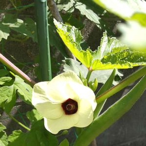 *オクラ* 丸オクラの花が 咲きました。 もう少しで実が出来そうです。