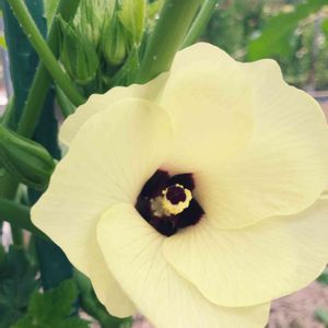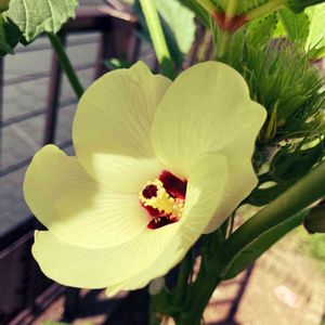 オクラの花。 初めて見ました。 見つけた時は、 テンション上がりました~(^^)