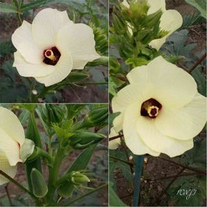 🌸オクラ🌸 こないだ知らないうちにオクラが出来ていてびっくり🤩 今回は☔だけど見逃しませんでしたよ💖 野菜の花の中でも この花は最強だよね💕 ハマボウという花とそっくりですね🤩 これは種まきしたオクラだけど 枯れた場所に買った白いオクラの苗を、 2箇所植えましたよ。 🤭花は同じかなー?