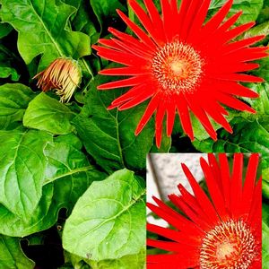 𓈒𓏸𓐍 ガーベラ・ポーチュラカ 𓈒𓏸𓐍 和名:ハナスベリヒユ 散歩道に咲く艶やかなお花さん🌺 【ガーベラ】 ・キク科ガーベラ属の総称。 ・宿根草。 ・狭義にはアフリカセンボンヤリ Gerbera jamesonii をガーベラとすることがある。 学名: Gerbera