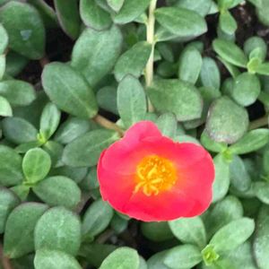 ポーチュラカ 葉ばかり繁盛し少し遅れ気味でやっと咲き始めました 夏のお気に入り花の一つです