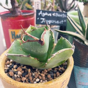 豪雨でずぶ濡れになった植物達 今日は、曇り☁️で風もあり 乾いてくれたかな🙄 すでに夏バテしてますが 涼しくてぐっすり眠れそう🥱 その前に📸を‥ 快気内祝いで届いた🪴 なんとアガベ チタノタ ジャガーノート君 肉厚の短葉が魅力的♡ かっこいい鉢に入ってお似合いです 2枚目は、身長の伸びを競ってるホワイトゴースト👻に 弟ラクテア君がやってきました 我が家は彼女のリメ缶がたくさん🥫 居心地良いから🍀みんな元気に育ってます♪ 健康第一❤️🩹回復を祈っています