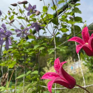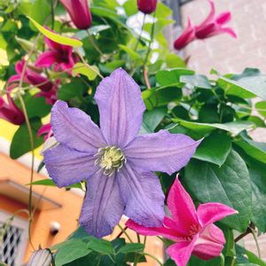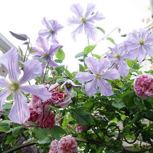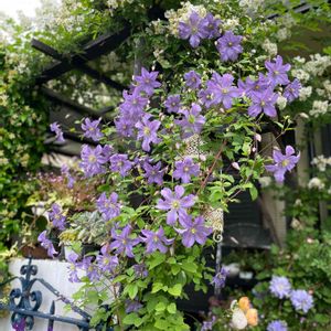 プリンセスダイアナと対を成すクレマチス プリンスチャールズ たくさん咲いてきました (灬ºωº灬)♡ 薔薇との、コラボも間に合いました🎵 【 プリンスチャールズ】 遅咲き ビチセラ系 新旧両枝咲き 強剪定