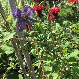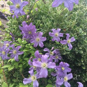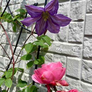 今日はいい天気になりました✨ クレマチス プリンス・チャールズ💜 ブルーボーイと一緒に咲いてます😊