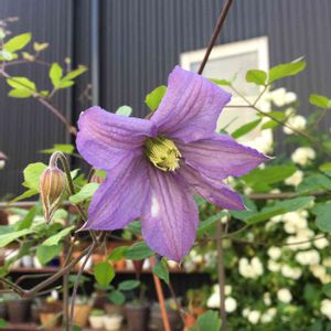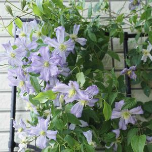 クレマチス プリンスチャールズ。 この暑さに負けず、お庭で咲いてくれているクレマチス。現在は三番花が咲いている状態です。 淡い紫色がとても綺麗です。 一番花が既に咲いている状態で4月に購入して、二番花が6月に咲き、三番花が8月に咲きました。 やっぱり6月に咲いた二番花の方が全体に咲いて花数も多かったです。 三番花が咲き終わったら、また剪定しようと思ってますが、2ヵ月後に今年最後の四番花?が咲いてくれるのか楽しみにしています。