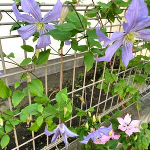 今日のクレマチス♡プリンスチャールズ テンテルはまだつぼみが多く 踊場はフェンスの裏側になっちゃった 明日は雨予報☔️うまく咲きそろわないかなぁ