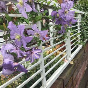 連投失礼します ガゼボの周りのクレマチス達 プリンスチャールズと思ってたけど…皆さんのプリンスチャールズを拝見してたらもしかして違う?! 昔に植えたのはラベル劣化して曖昧になってきました😅 紫はビオラです 白い小花のカモミールがクレマチスを引き立てる~可愛い