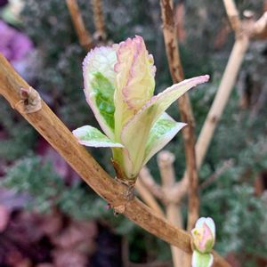 斑入りのアジサイ恋路ヶ浜も、芽吹き♡