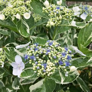 斑入りガクアジサイ❄️恋路ヶ浜 青いツブツブのお花が咲き始めました✨