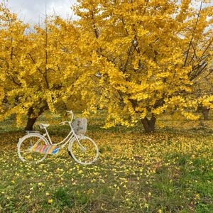 ダイコンの花と娘と自転車 ジッとして動かず!