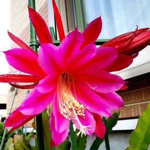 ベランダのクジャクサボテンが咲きました。日照時間が少ないベランダですがクジャクサボテンとは相性がよいようです